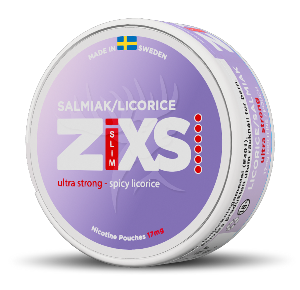 Zix's Salmiak Ultra Strong slim pouches are perfect for that great taste and flavour. With 17mg of nicotine per gram and 12mg per pouch you will have a nicotine blast to keep you awake.